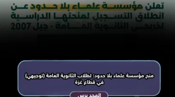 منح مؤسسة علماء بلا حدود: لطلاب الثانوية العامة (توجيهي) في قطاع غزة