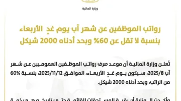 تعلن وزارة المالية الفلسطينية صرف رواتب موظفي السلطة في قطاع غزة والضفة